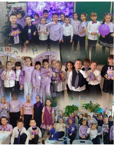 Оқушылар мен мұғалімдер күлгін реңктегі киімдер киіп келіп, танымдық және шығармашылық тапсырмалар орындады. Күн бойы...