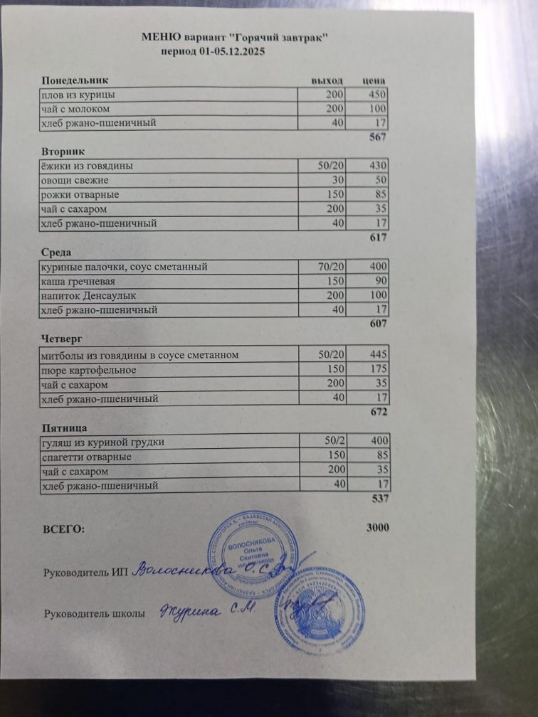 Бұйрық 2024-2025 оқу жылы тамақтандыруды ұйымдастыру туралы