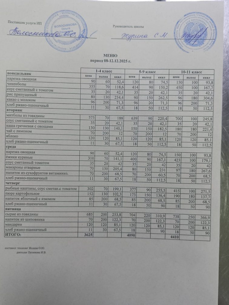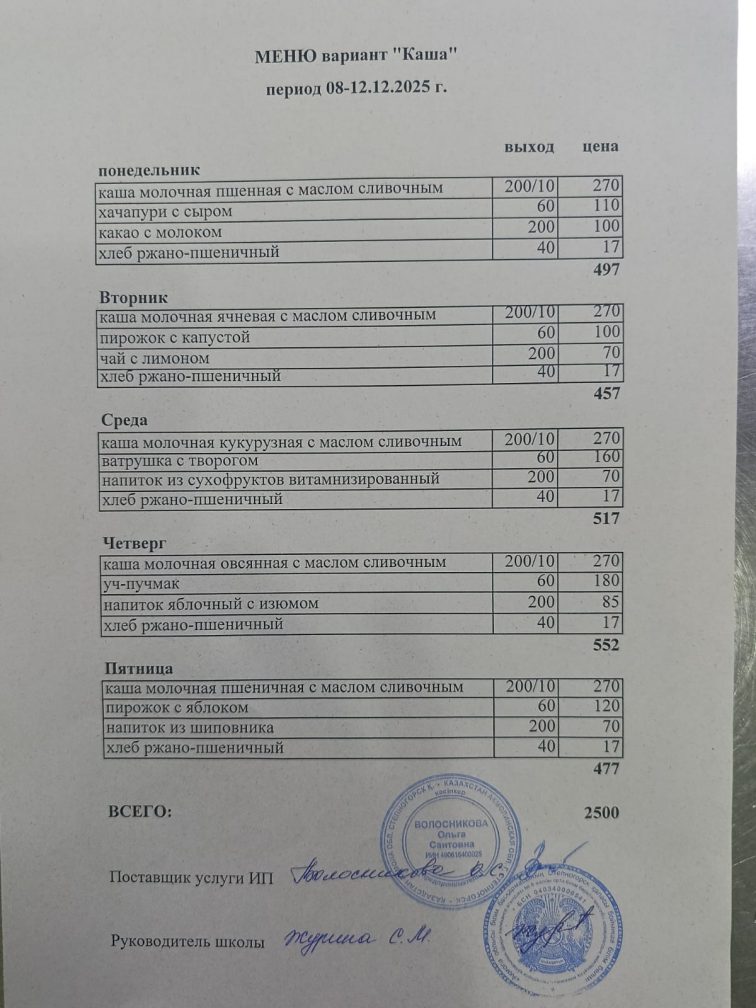 Бұйрық 2024-2025 оқу жылы тамақтандыруды ұйымдастыру туралы