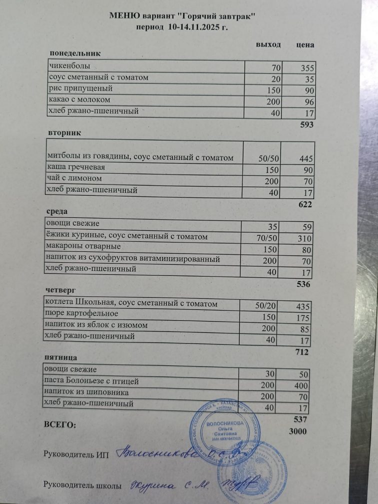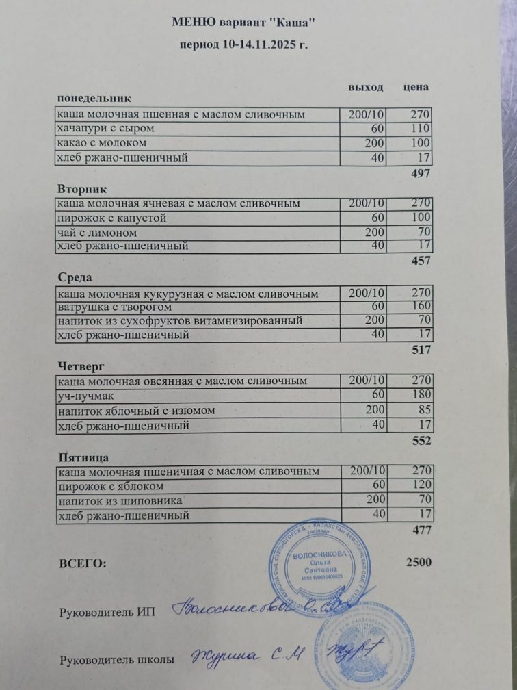 Бұйрық 2024-2025 оқу жылы тамақтандыруды ұйымдастыру туралы