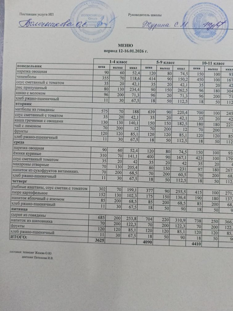 МЕНЮ 2025-2026