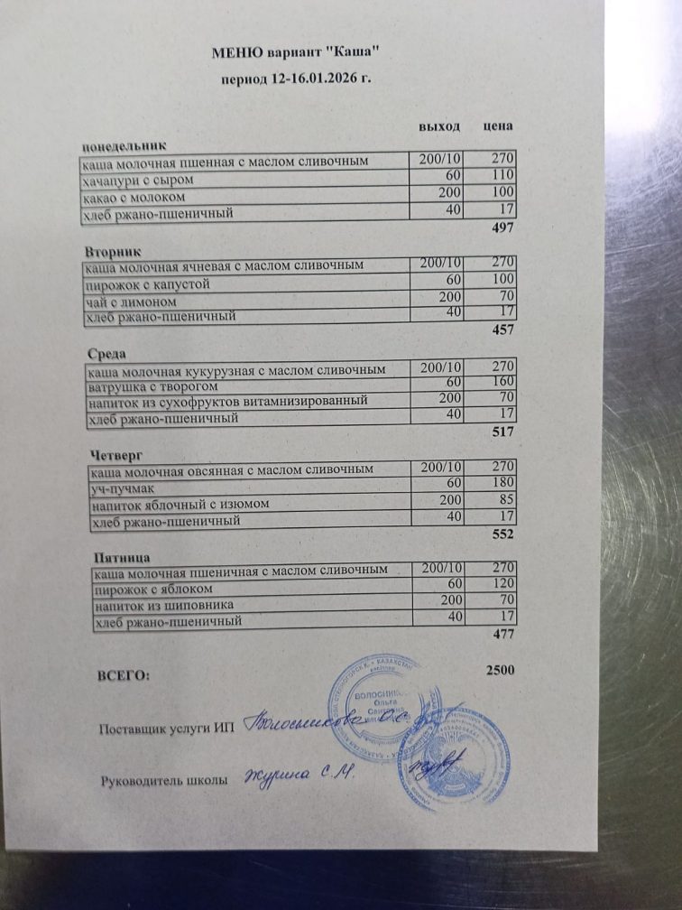 Бұйрық 2024-2025 оқу жылы тамақтандыруды ұйымдастыру туралы