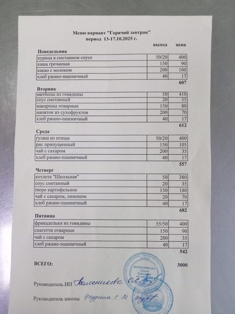 Бұйрық 2024-2025 оқу жылы тамақтандыруды ұйымдастыру туралы
