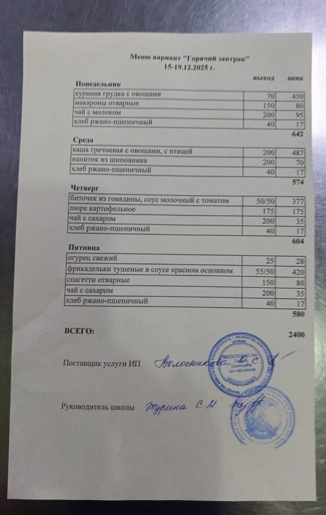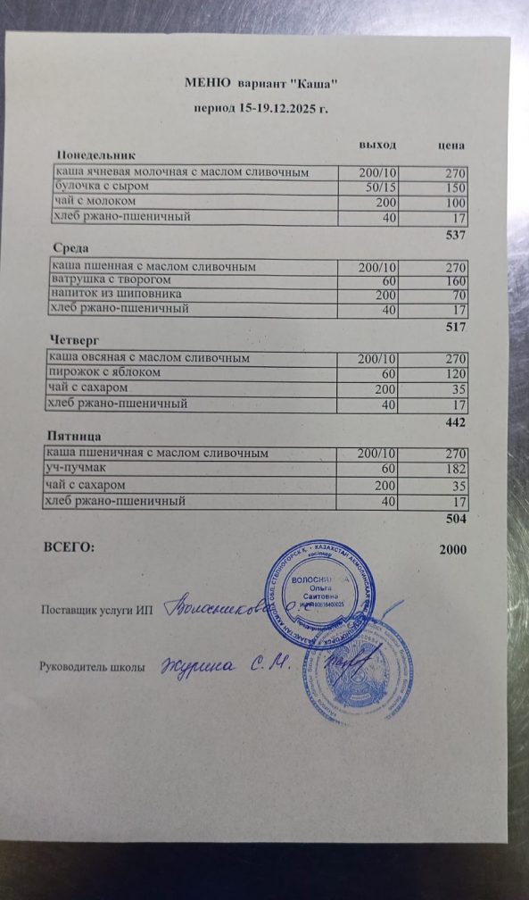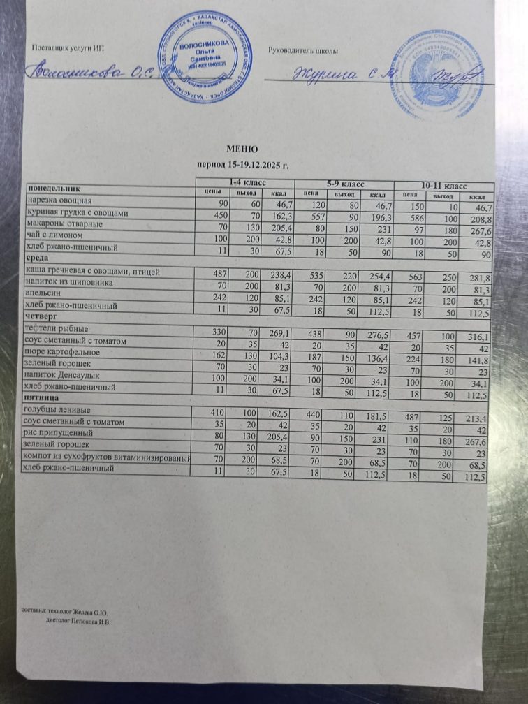 Бұйрық 2024-2025 оқу жылы тамақтандыруды ұйымдастыру туралы