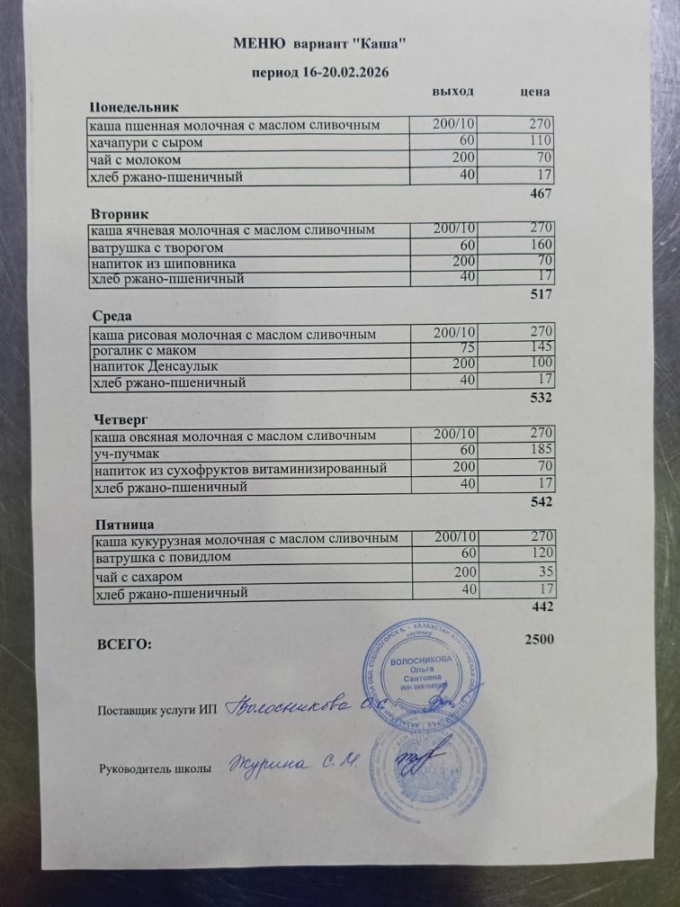 Бұйрық 2024-2025 оқу жылы тамақтандыруды ұйымдастыру туралы