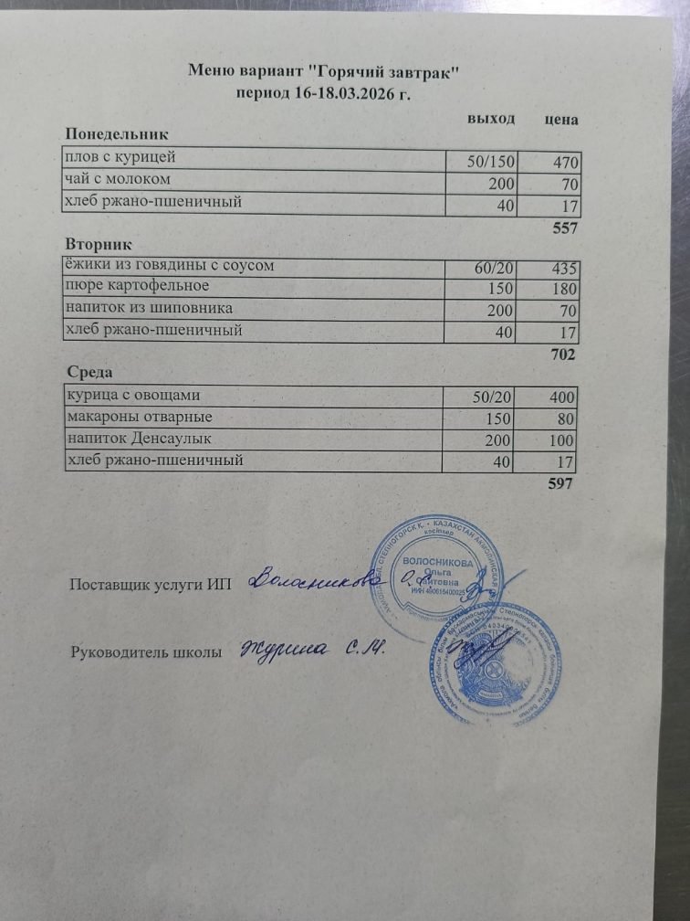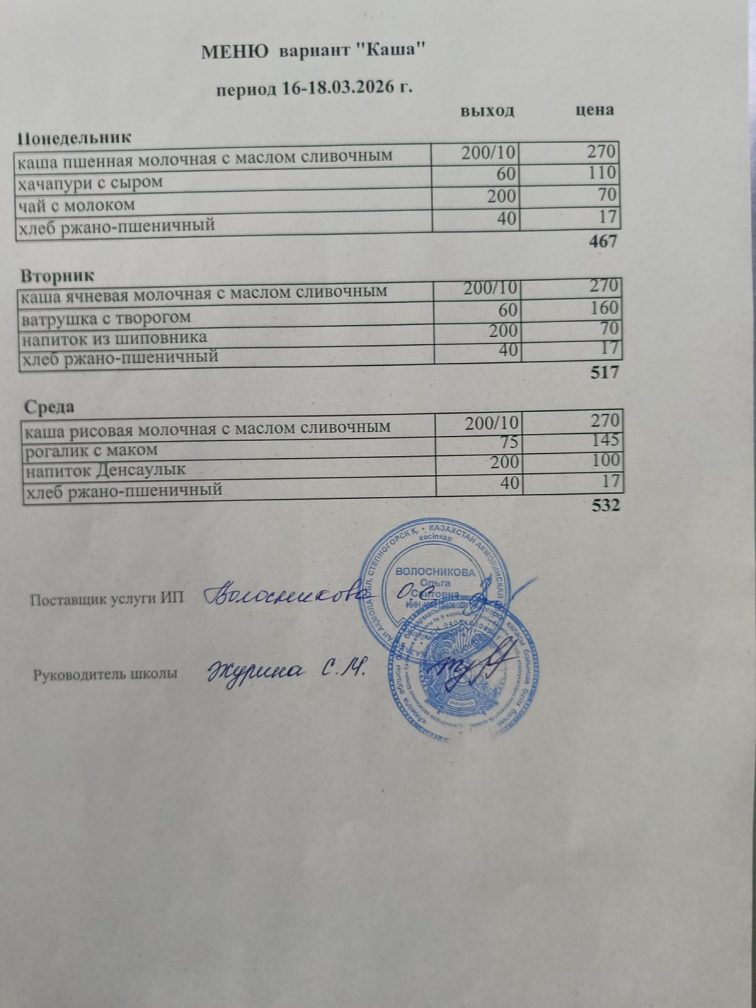 Бұйрық 2024-2025 оқу жылы тамақтандыруды ұйымдастыру туралы