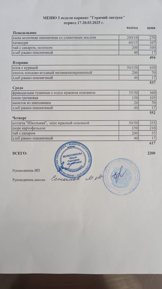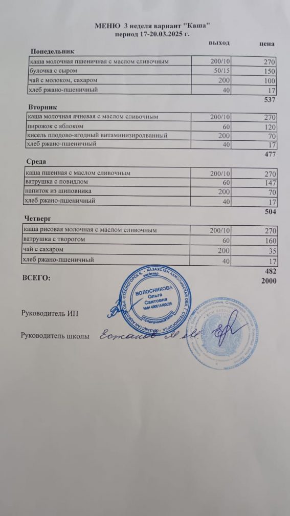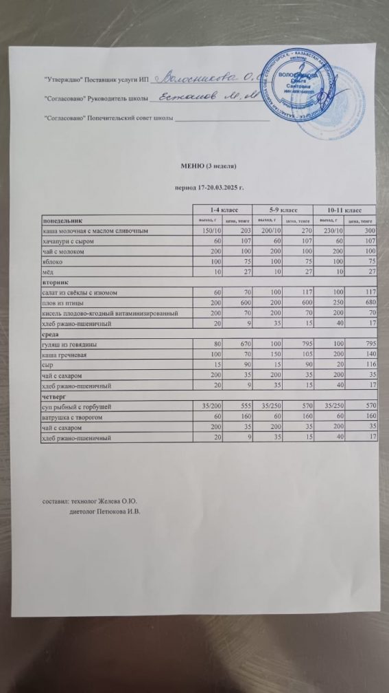 План мероприятий по формированию культуры здорового питания школьников по КГУ «Общеобразовательная школа №8 имени Шокана Уалиханова» на 2024-2025 учебный год