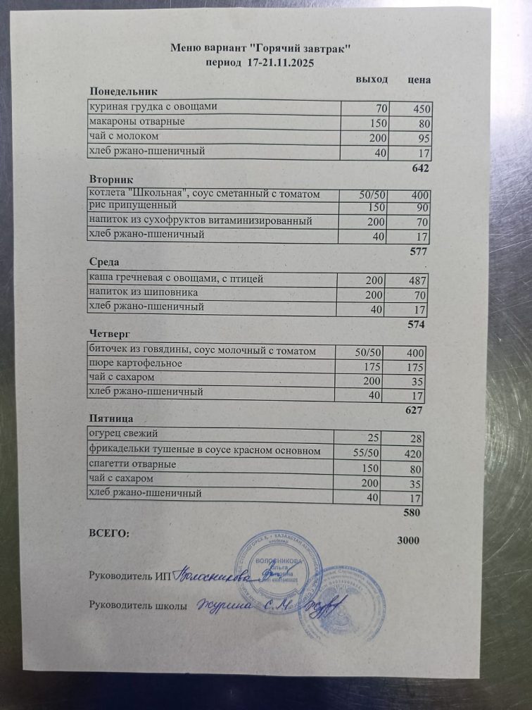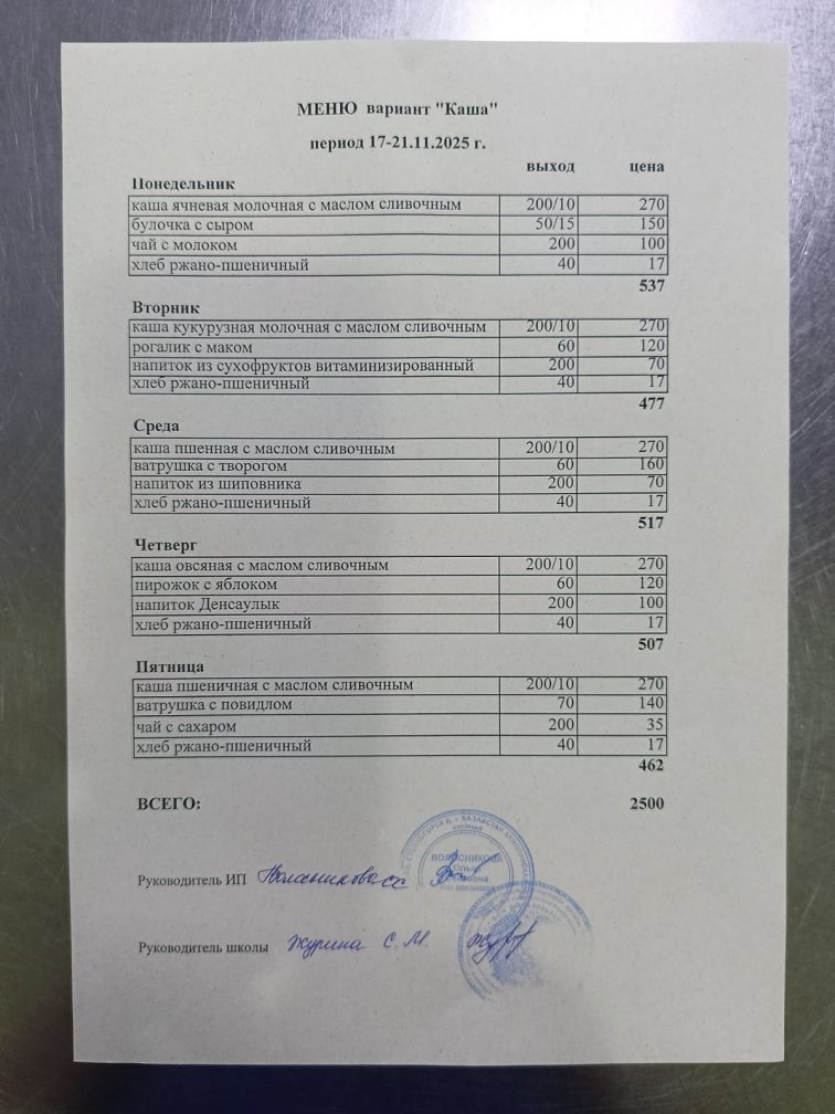 Бұйрық 2024-2025 оқу жылы тамақтандыруды ұйымдастыру туралы