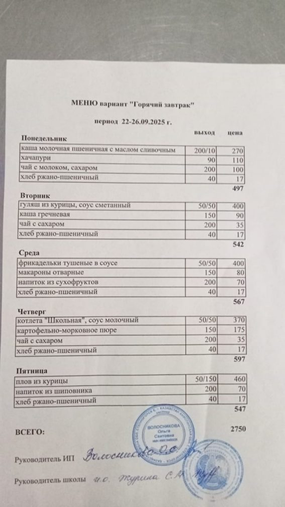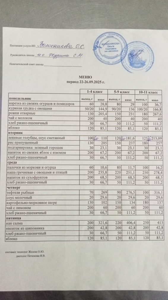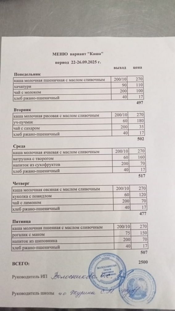 Бұйрық 2024-2025 оқу жылы тамақтандыруды ұйымдастыру туралы