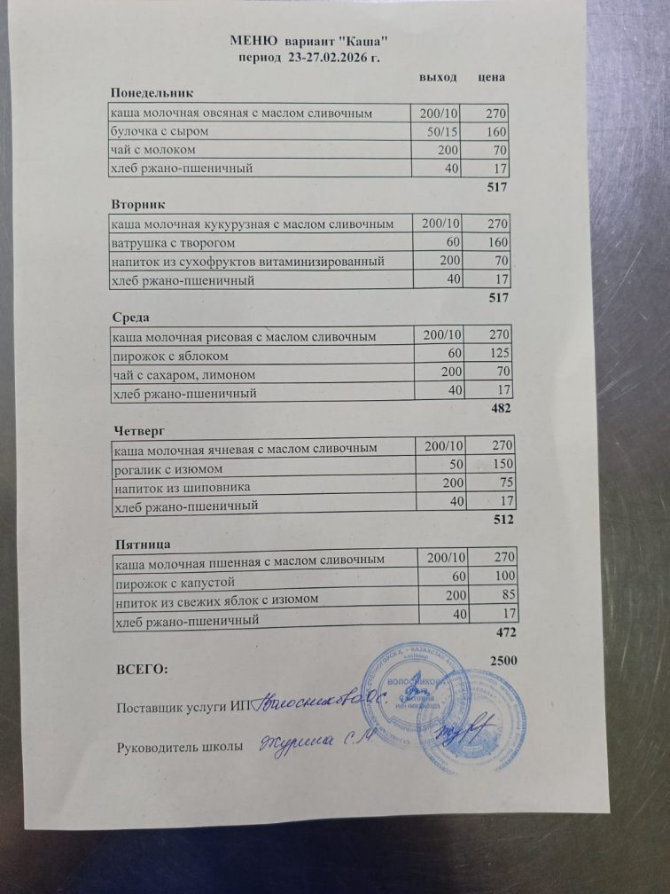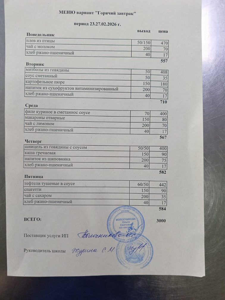 Бұйрық 2024-2025 оқу жылы тамақтандыруды ұйымдастыру туралы