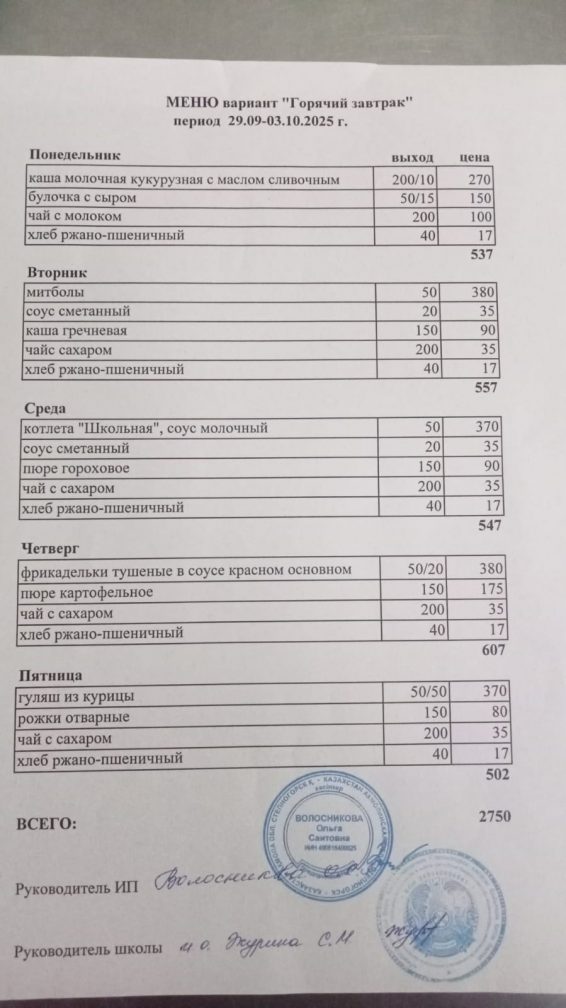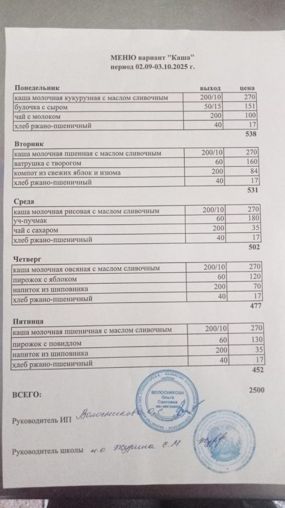 Бұйрық 2024-2025 оқу жылы тамақтандыруды ұйымдастыру туралы