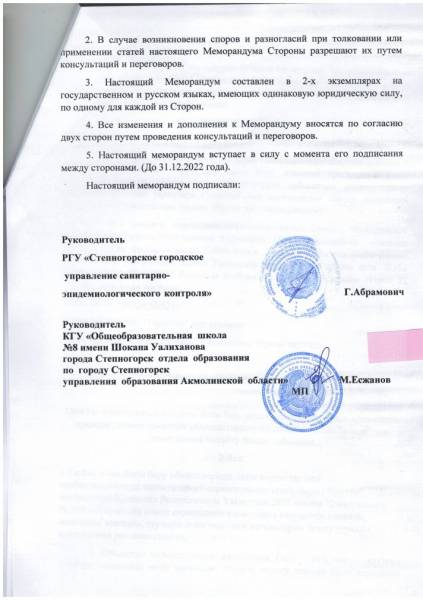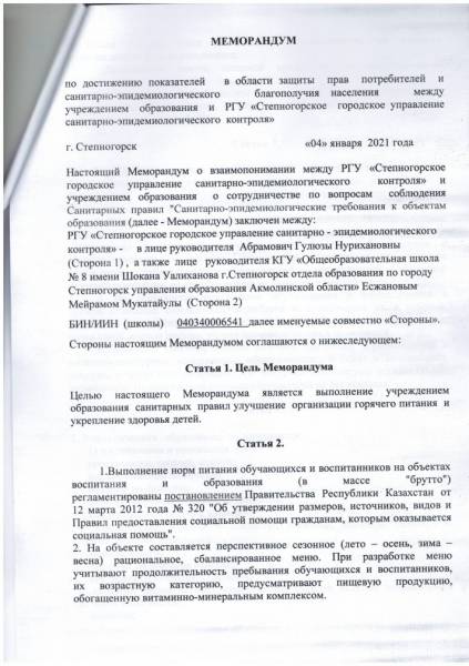 Коммунальное государственное учреждение «Общеобразовательная школа № 8 имени Ш. Уалиханова» отдела образования г. Степногорска
