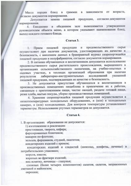 "Об утверждении стандартов питания в организациях здравоохранения и образования"