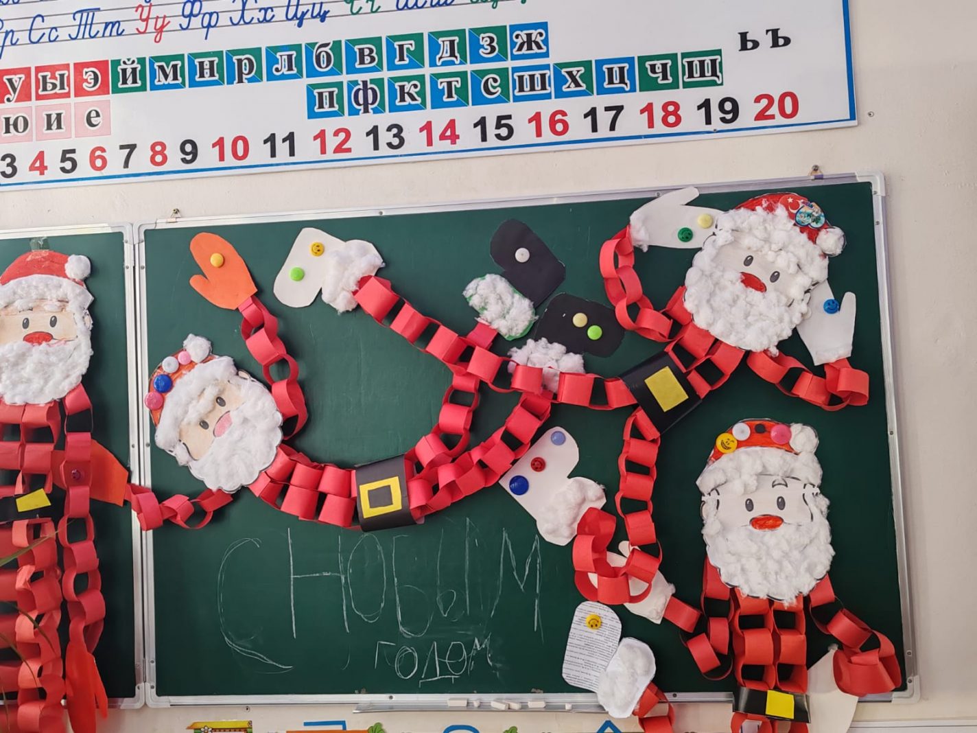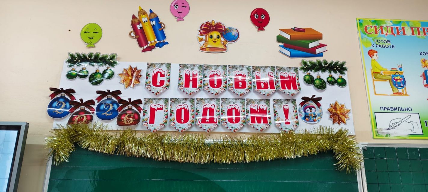 Оқу кабинеттері бірыңғай жаңа жылдық стильде безендірілді. Безендіруде қар ұшқындары, плакаттар, гирляндалар, оқушылардың суреттері мен қолөнер бұйымдары қолданылып, бұл балалардың шығармашылық қабілеттерін дамытуға және оқу үдерісінде мерекелік көңіл күйді сақтауға ықпал етті.